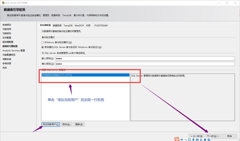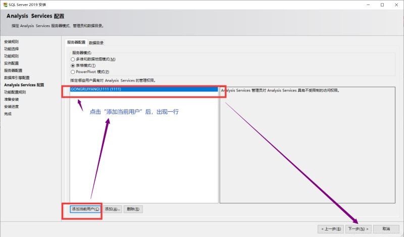 點(diǎn)擊添加當(dāng)前用戶,再單擊下一步