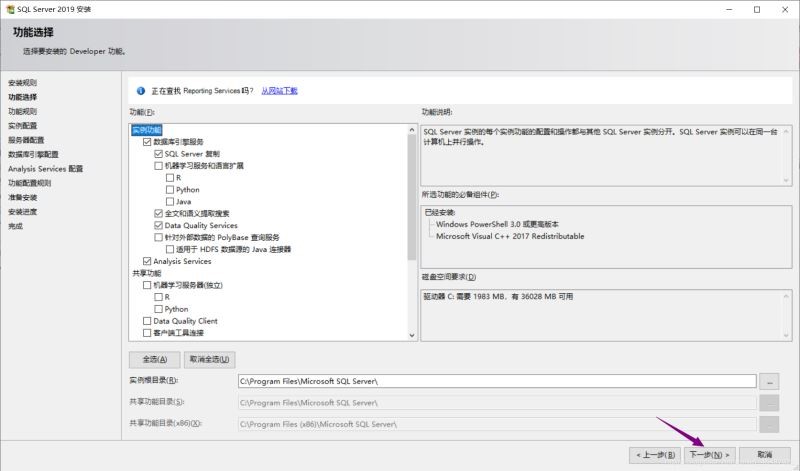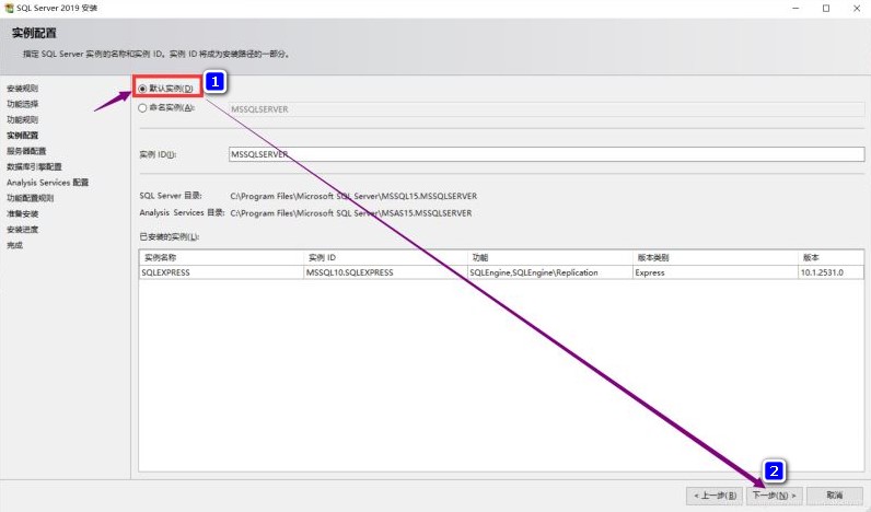 勾選默認(rèn)實(shí)例,再單擊下一步
