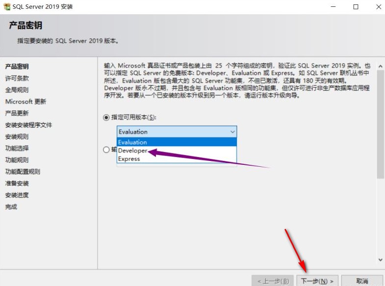 選擇Developer(開發(fā)者)類型,不需要輸入秘鑰,點(diǎn)擊下一步