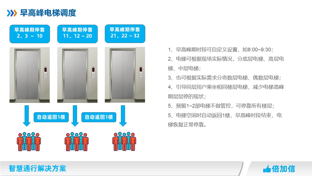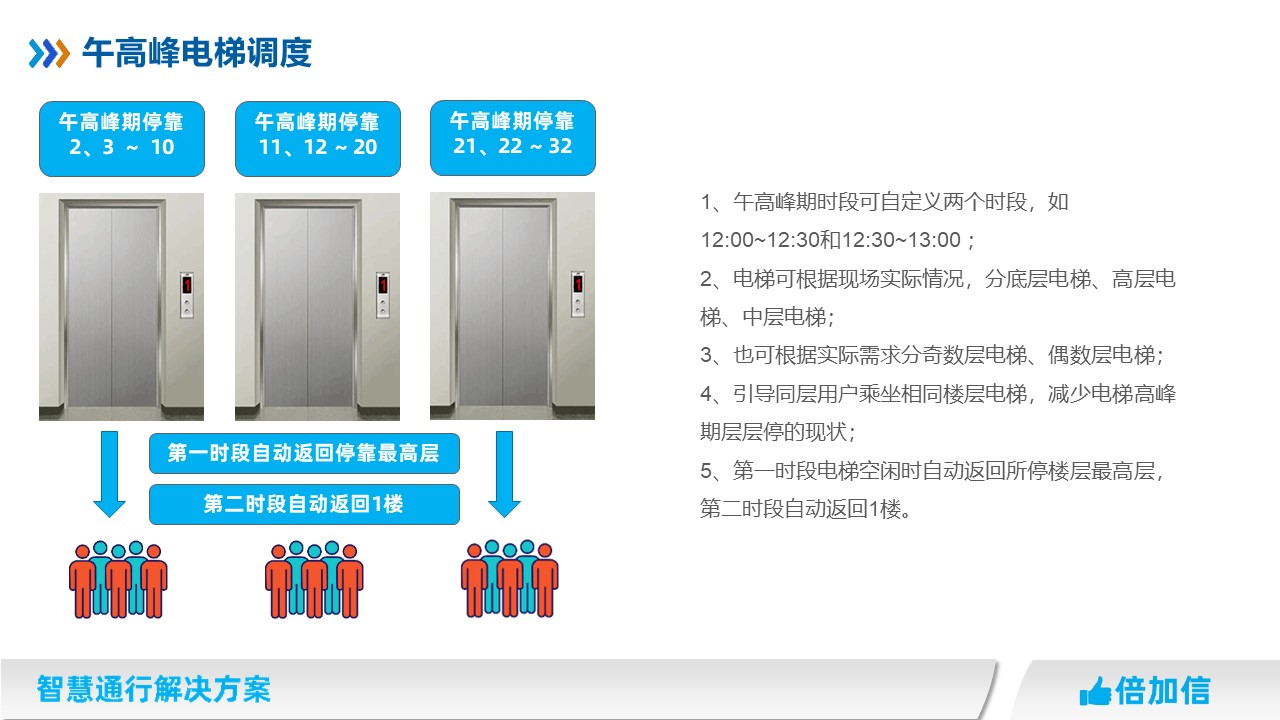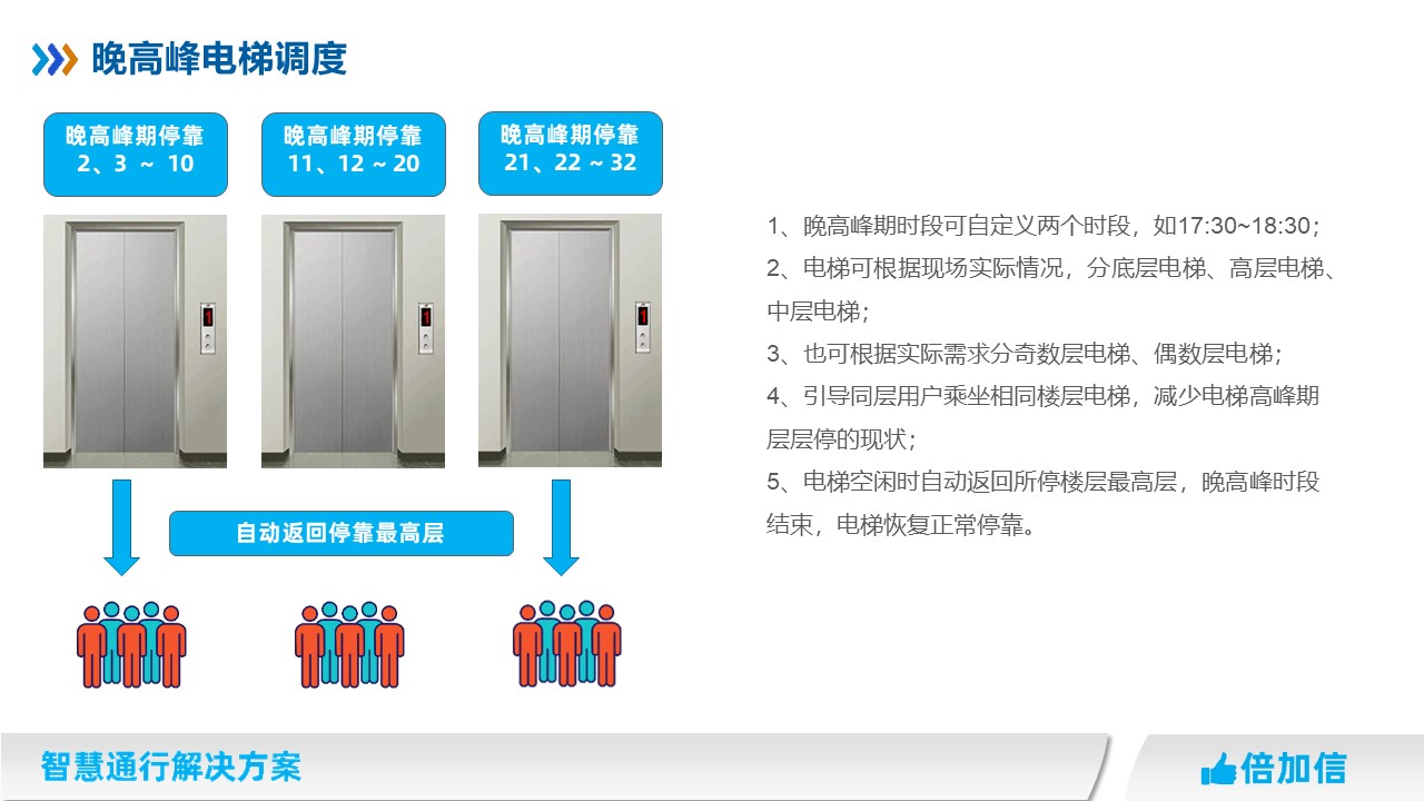 4、引導同層用戶乘坐相同樓層電梯,減少電梯高峰期層層停的現(xiàn)狀;