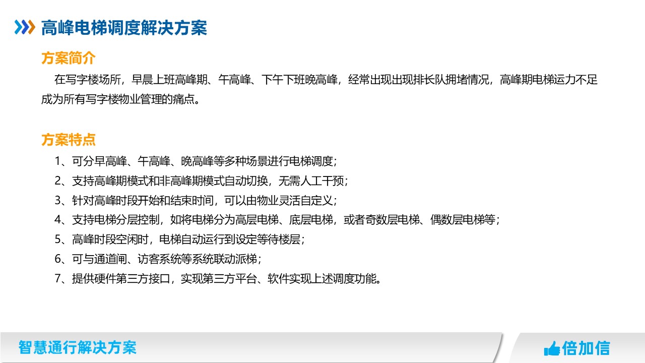 1、可分早高峰、午高峰、晚高峰等多種場景進行電梯調(diào)度;