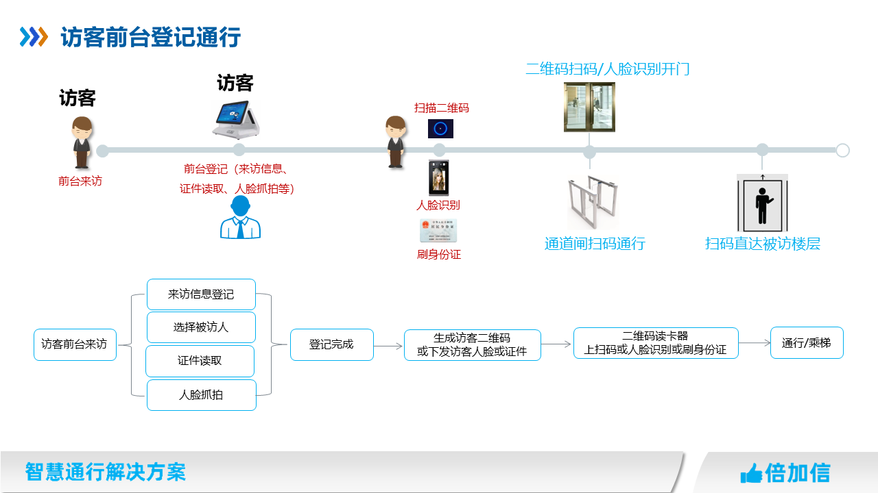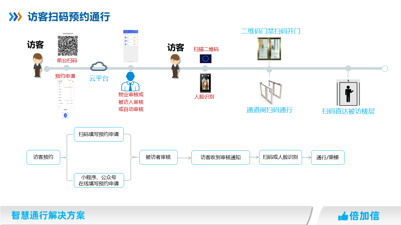 在住宅小區(qū)、寫字樓、園區(qū)、企事業(yè)單位等場所,物業(yè)往往針對外來人員都需要管控,我司提供多種訪客通行解決方案,滿足不同場景訪客進(jìn)出物業(yè)管理需求。