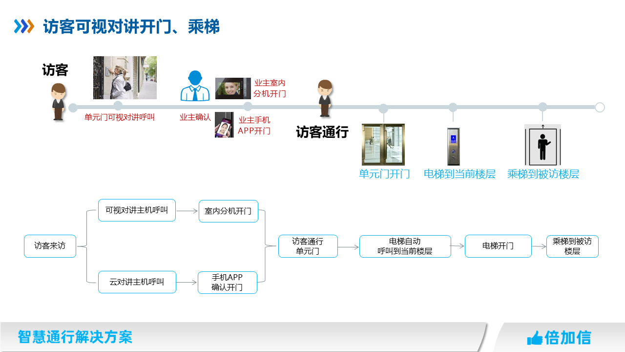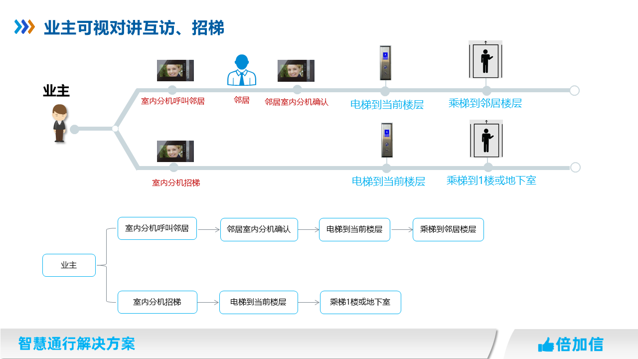 5、住宅項(xiàng)目訪客可在可視對講呼叫業(yè)主,實(shí)現(xiàn)呼梯聯(lián)動(dòng)招梯和乘梯;