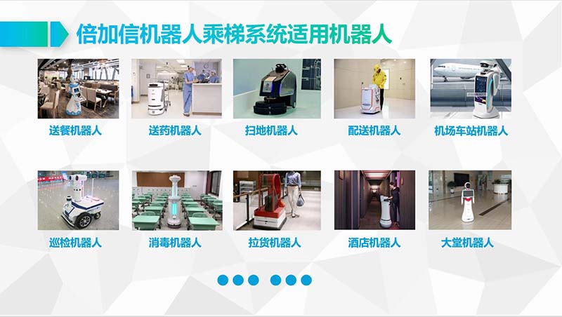 倍加信科技另有機(jī)器人WIFI乘梯、機(jī)器人藍(lán)牙乘梯、機(jī)器人云通訊乘梯、機(jī)器人LoRa乘梯、機(jī)器人ZigBee通訊乘梯、機(jī)器人2.4G通訊乘梯、機(jī)器人語音乘梯、機(jī)器人5G乘梯等乘梯解決方案。