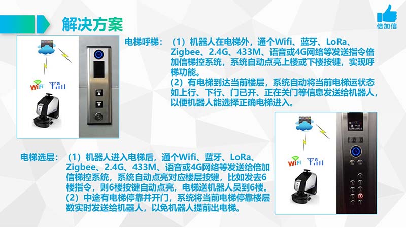 在寫字樓中,機器人自動乘梯技術(shù)同樣具有廣泛的應用前景。首先,在寫字樓中,有很多人需要在不同的樓層之間移動,這使得傳統(tǒng)的電梯難以滿足人們的需求。在這種情況下,機器人可以通過自動乘梯技術(shù),更便捷和快速地將人們送到他們所要去的樓層,從而提高效率。此外,機器人還可以監(jiān)控寫字樓的各種設施和設備,保障其正常的運行和維護,提高寫字樓的管理水平。
