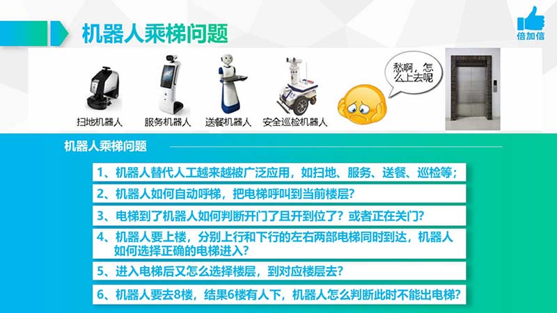 綜上所述,倍加信機器人乘梯解決方案中存在著多種安全問題。通過加強機器人的感知能力、控制能力和安全防護能力,定期檢查電梯,設置安全攝像頭以及加強法律法規的制定和執行等措施,能夠有效減少機器人乘梯時出現的安全問題,保證機器人乘梯的安全性和可靠性。